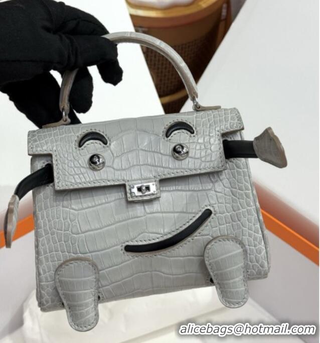 Reasonable Price Hermes Kelly Doll Bag in Matt Alligator Leather H16 Grey/Black 2025(Handmade)
