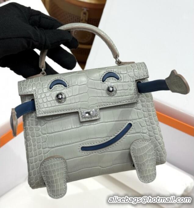Buy Fashionable Hermes Kelly Doll Bag in Matt Alligator Leather H16 Grey/Blue 2025 (Handmade)