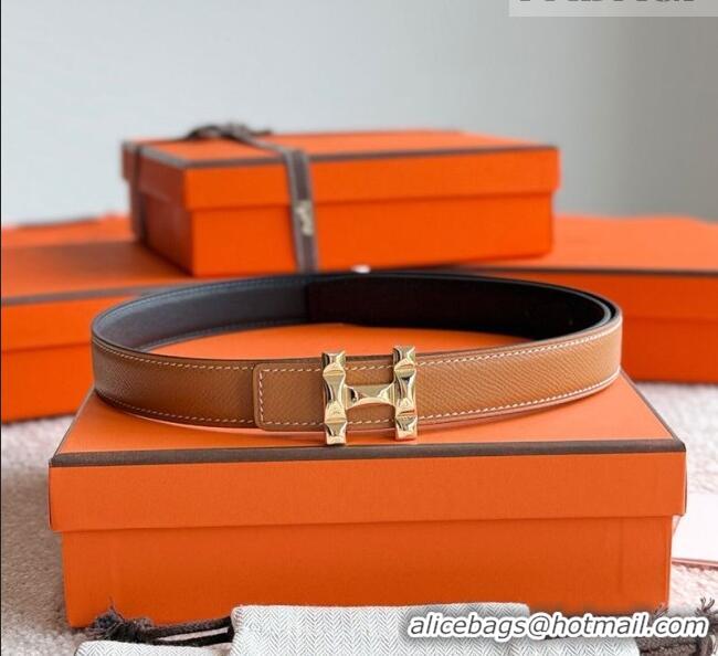 New Fashion Hermes Women's Fibbia da Cintura H Infini Reversible Leather Belt 2.4cm 0617 Brown/Gold 2025