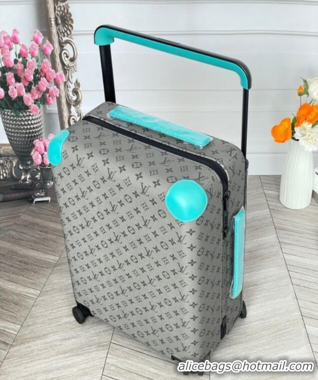 Best Quality Louis Vuitton Horizon 55 Rolling Suitcase Luggage Travel Bag in Monogram Canvas 0926 Grey/Light Blue 2025