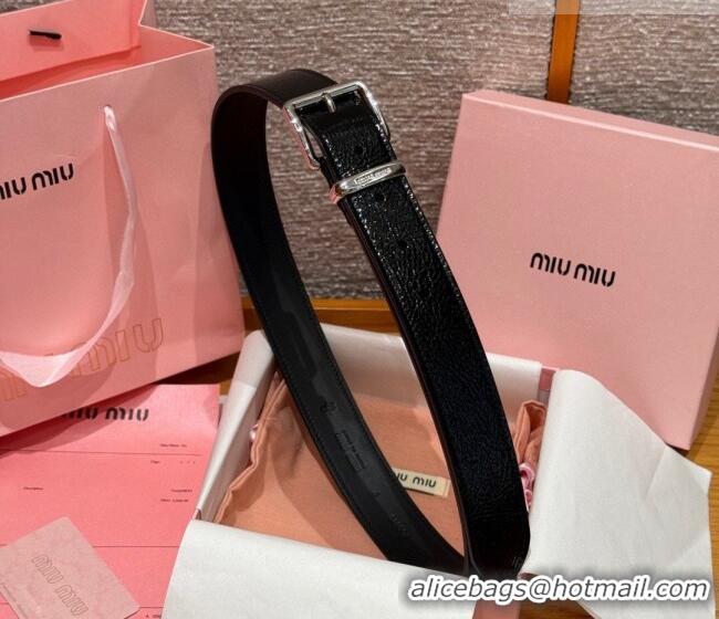 Best Quality Miu Miu Belt 3.5cm in Patent Calfskin Leather MM26010402 Black/Silver 2025