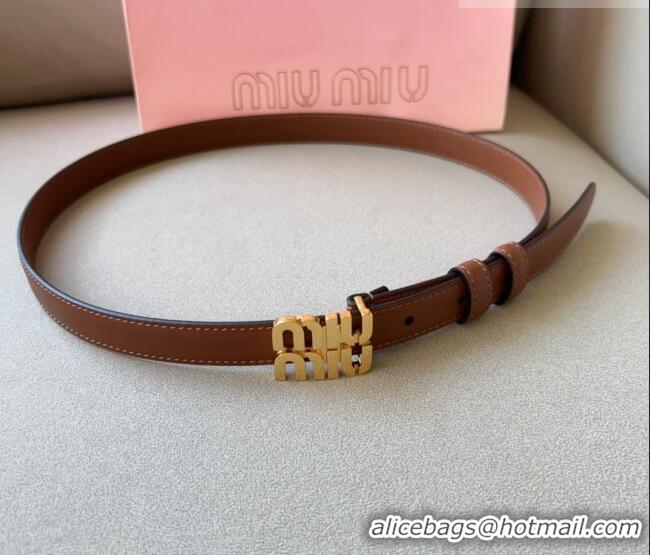 Best Quality Miu Miu Calfskin Leather Belt 2cm with Miu Buckle 1127 Tan Brown 2024