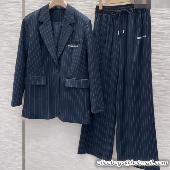 Best Quality Miu Miu Striped Jacket and Pants Set M091801 Dark Blue 2025