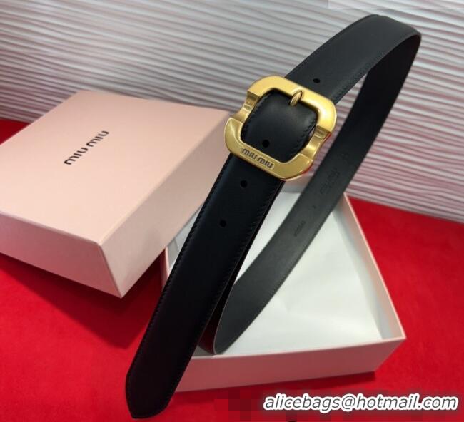 Best Quality Miu Miu Supple Calfskin Belt 3.4cm with Gold-Tone Square Buckle 2012025 Black 2025