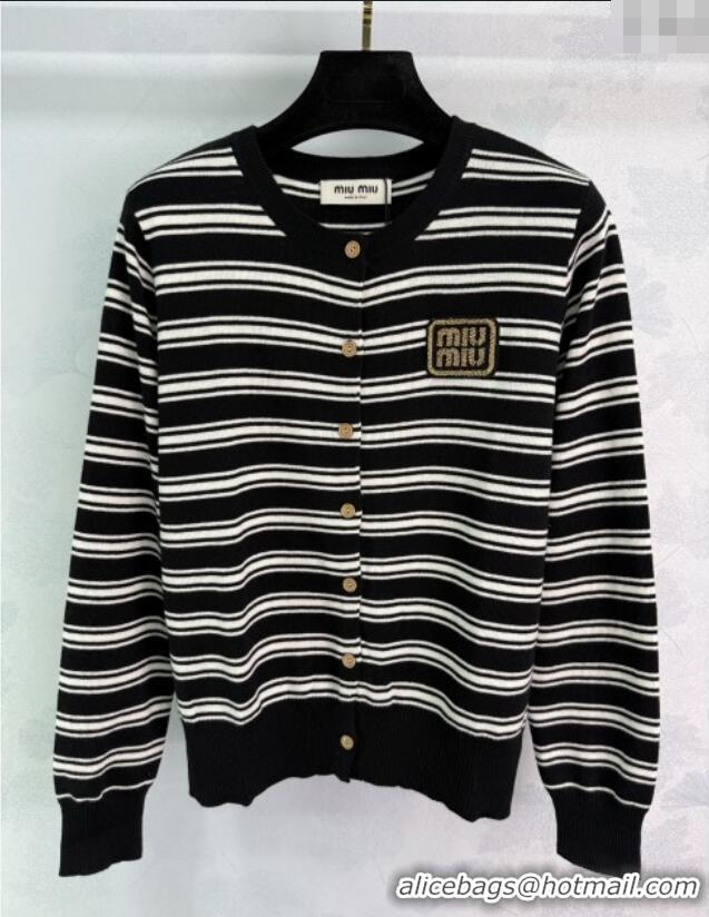 Luxury Discount Miu Miu Wool Striped Cardigan 0813 Black 2025