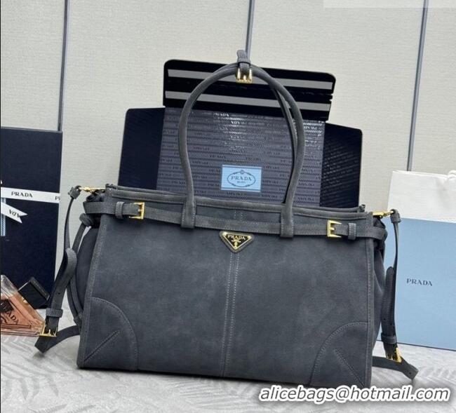 Top Design Prada Bonnie large suede handbag 1BA433 Dark Grey 2025