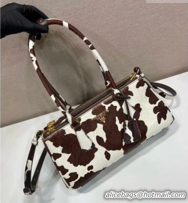 Best Quality Prada Galleria medium printed pony hair bag 1BA457 White/Dark Brown 2026