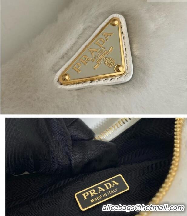 Best Price Prada Re-Edition mini shearling bag 1BC204 White 2026