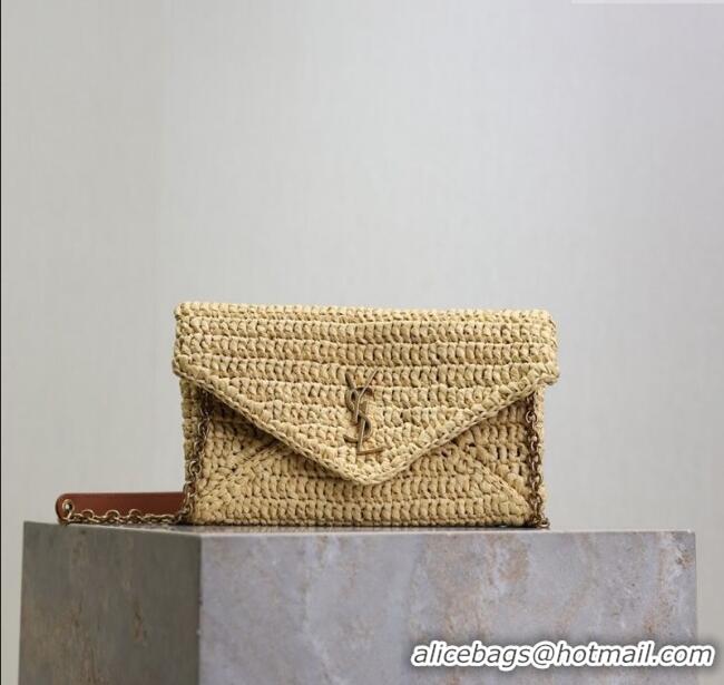 Good Product Saint Laurent Cassandre Chain Clutch in Raffia Straw 819271 Beige 2025