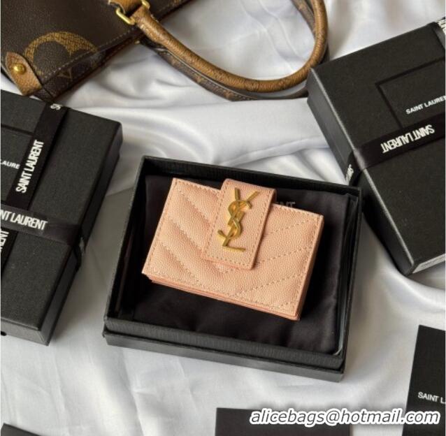 Best Quality Saint Laurent Grained Leather Card Holder Wallet 607907 Light Pink 2025