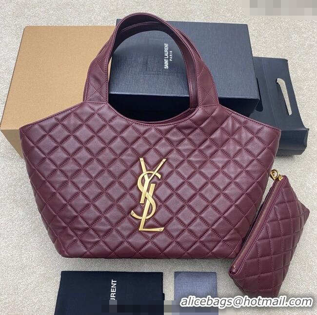 Buy Fashionable Saint Laurent Icare Medium Shopping Bag in Quilted Nappa Leather 858191 Burgundy 2025