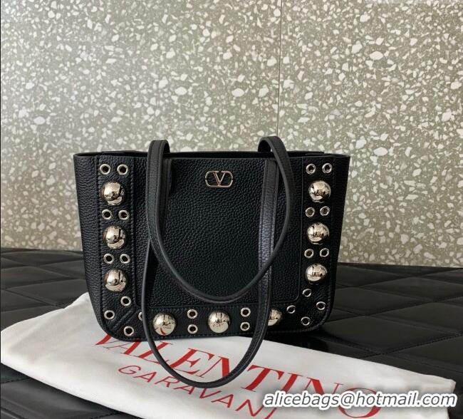 Best Quality Valentino Mini Nellcote Shopping Bag in Grainy Calfskin with Ball Studs 0078 Black 2025