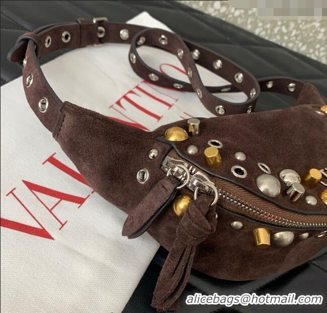 Best Quality Valentino Nellcote Belt Bag in Suede with Studs 2039 Brown 2025