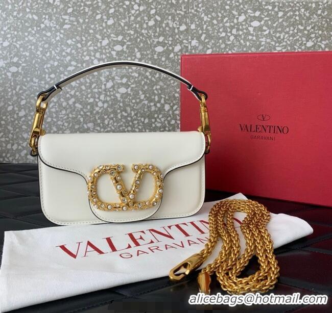 Your Position: Home > Valentino Handbag > Luxury Cheap Valentino Garavani Loco Small Shoulder Bag In Calfskin Leather With Jewel Logo 5053 White 2025