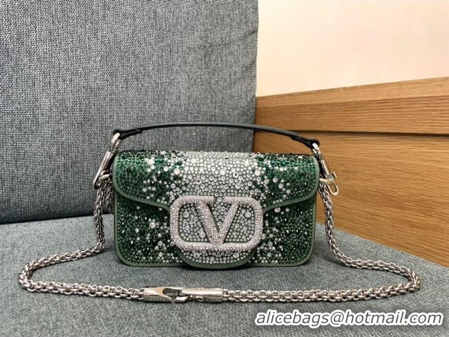 Trendy Design Valentino Small Loco Bag with Crystals 1134 Green 2025