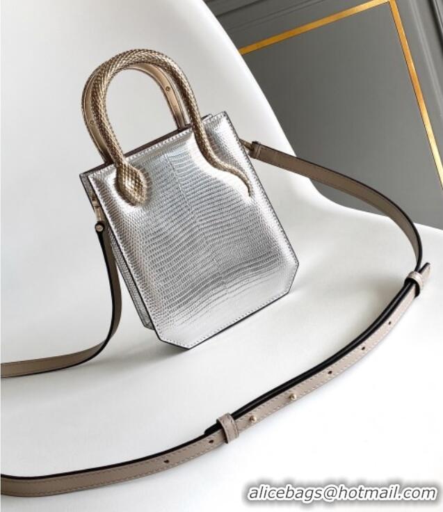 Top Grade Bvlgari Serpentine Mini Tote bag in Lizard Pattern Leather 30026 Silver 2024