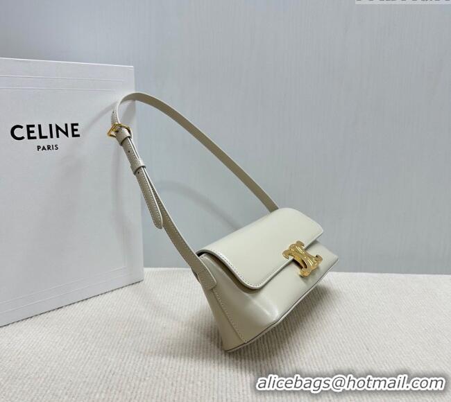 > Celine Handbags > Celine 2025 Bag > Good Taste Celine Triomphe Shoulder Bag in Shiny Calfskin 120553 White 2025