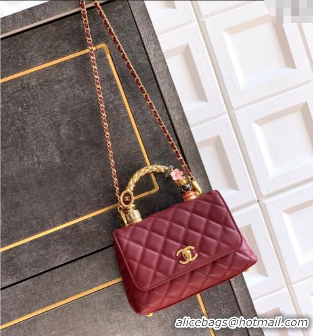 Popular Style Chanel Calfskin Leather Mini Flap Bag with Top Handle and Charm CH112701 Burgundy 2025