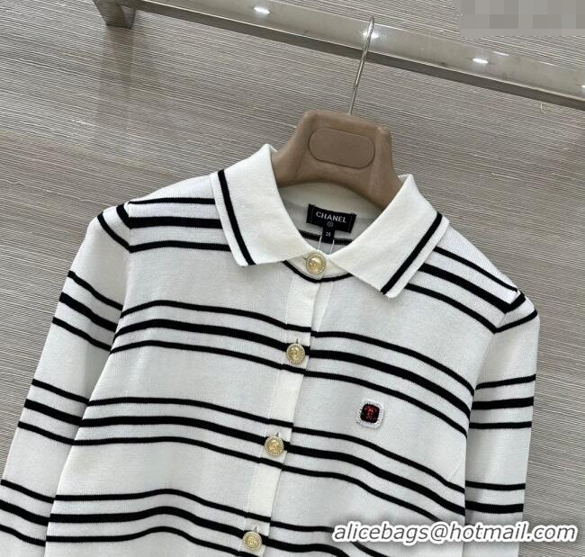 Big Discount Chanel Cashmere Striped Polo Shirt CH122611 White 2025