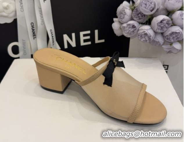 Big Discount Chanel Mesh Heel Slides Sandal wih Bow G47023 Beige 2026