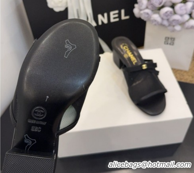 Good Quality Chanel Mesh Heel Slides Sandal wih Bow G47023 Black 2026