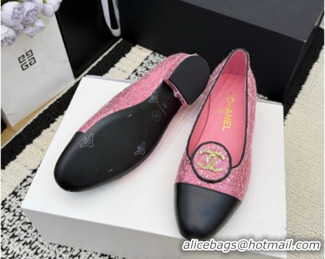 Sophisticated Chanel Sequins & Leather Ballets Flat with Circle CC CH030706 Pink 2026