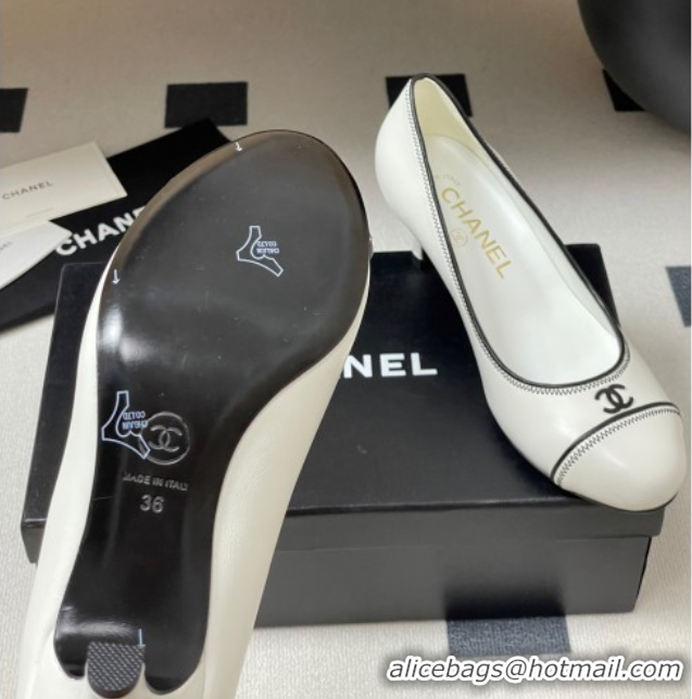 Big Discount Chanel Vintage Lambskin Leather Pumps 6.5cm White 2025 CH090116
