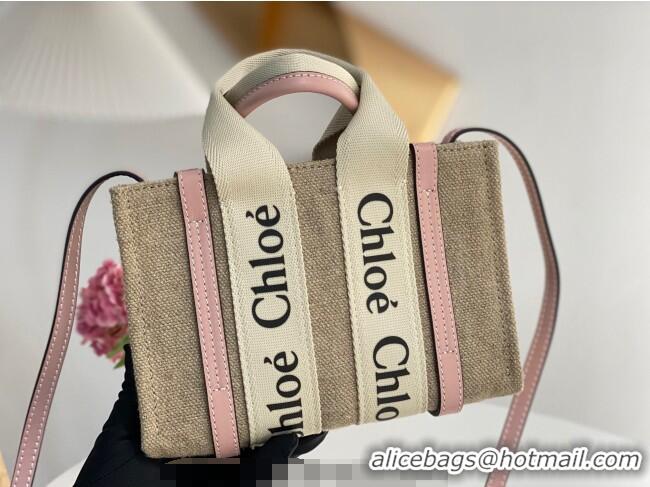 Big Discount Chloe Mini Woody Tote Bag in Linen Canvas and Calfskin Leather 1120 Light Pink 2025