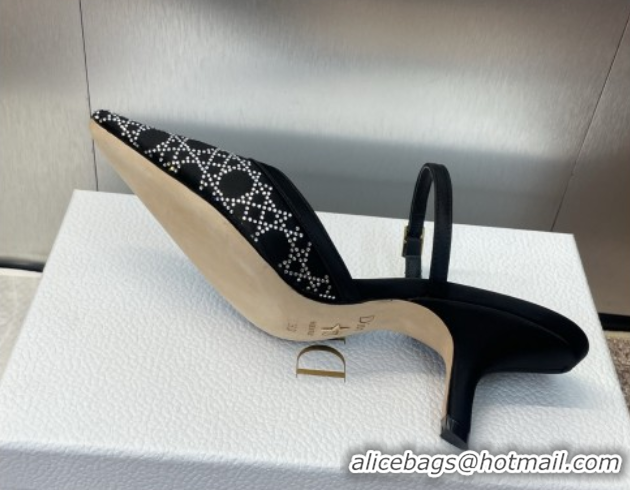 Luxurious Dior Capture Strap Mules 6.5cm in Satin with Strass Cannage Motif Black 0822085