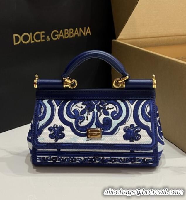 Big Discount Dolce&Gabbana Small Sicily Handbag with Majolica Embroidery D0401 Blue 2025