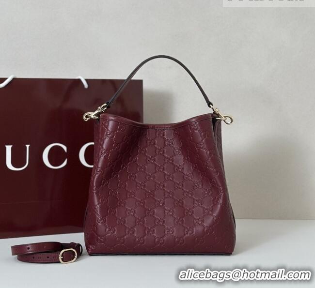 Big Discount Gucci GG Leather Emblem Medium Bucket Bag 815103 Burgundy 2026
