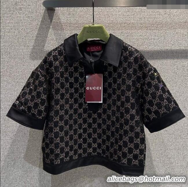 Big Discount Gucci GG Strass Polo Shirt GG122605 Black/Gold 2025