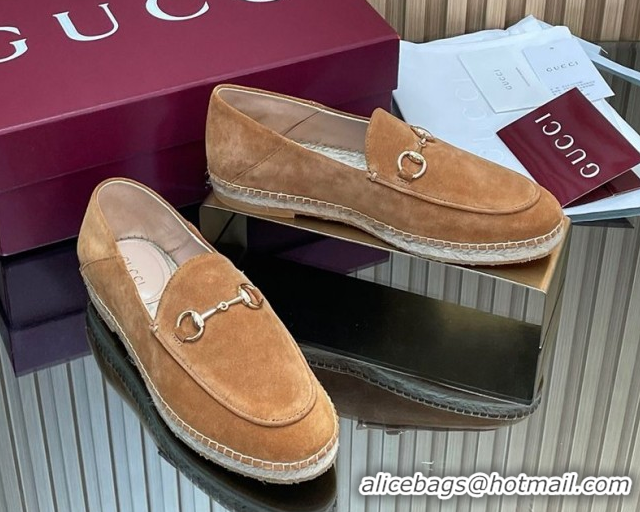 Stylish Gucci Suede Flat Espadrilles with Horsebit GG121805 Light Brown 2026