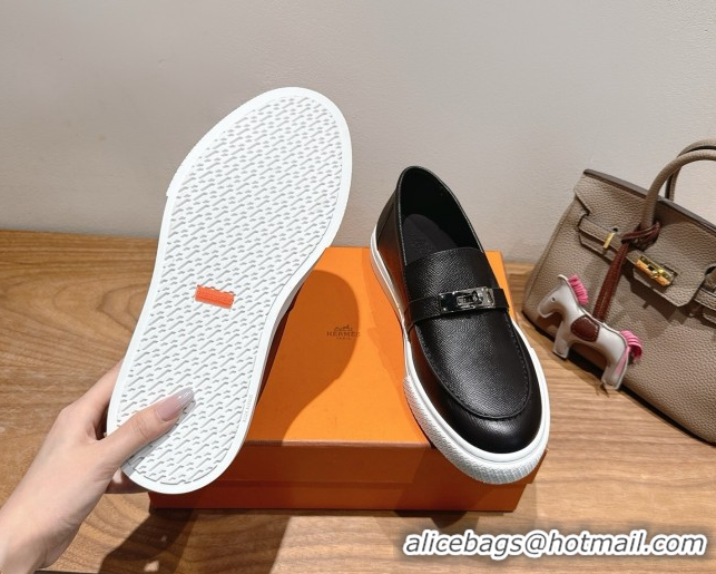 Big Discount Hermes Game Grained Calfskin Slip-on Sneakers with Kelly Buckle Black 2025 H082007 0820063