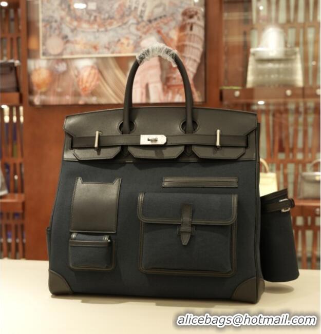 Buy Discount Hermes HAC CARGO HAUT A COURROIES 40 Bag in Canvas & Swift Leather H40 Black 2025(Half Handmade)