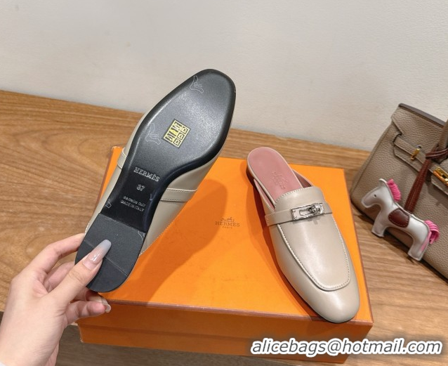 Shop Duplicate Hermes Oz Mule in Smooth Calfskin with Iconic Kelly Buckle White 0211057