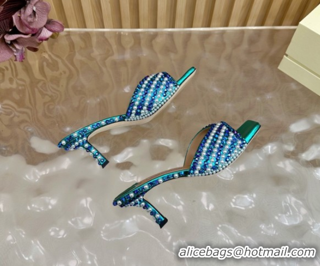 Buy Luxury Jimmy Choo Skye Heel Slides Sandal 6.5cm in Pearls and Strass Green 2025 JC103103