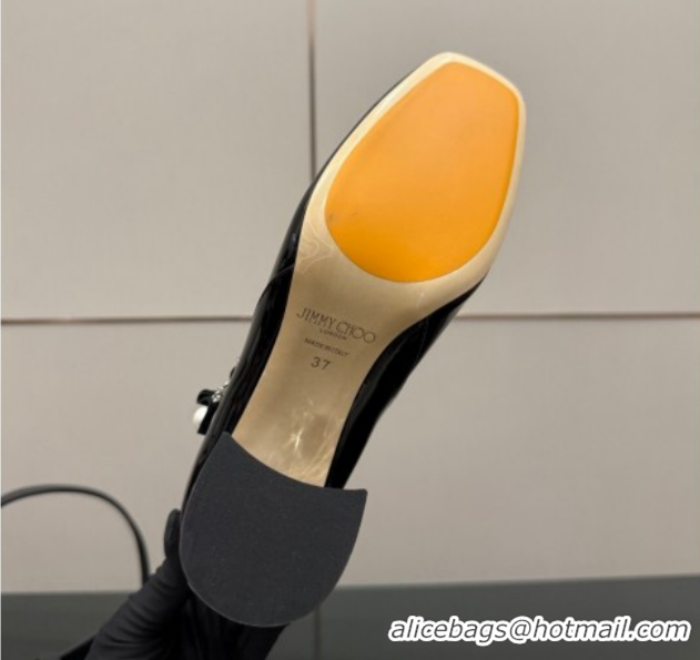 Shop Duplicate Jimmy Choo Jenson Mary Janes Pump 6cm in Patent Leather with Pearls Bow Black 1210066