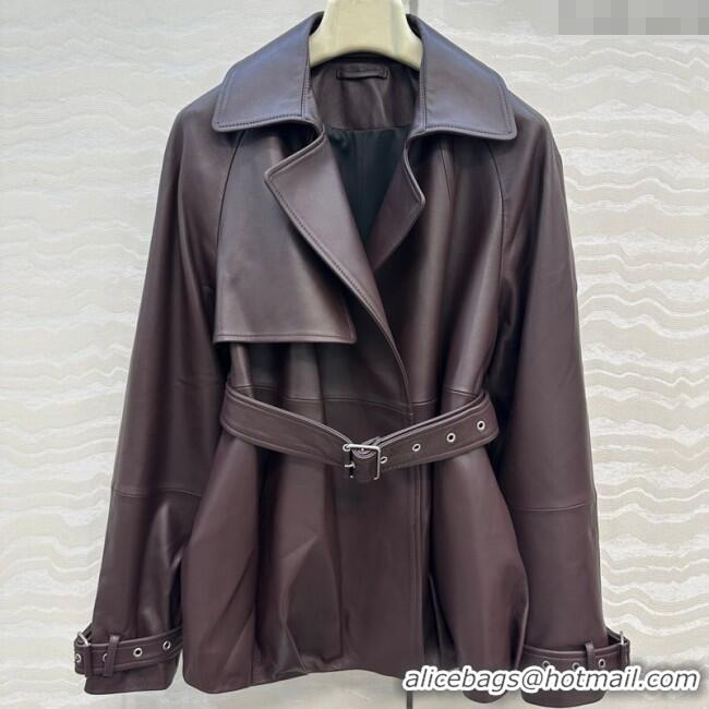 Famous Brand Loewe Lambskin Leather Jacket LW122605 Brown 2025