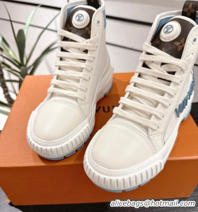Big Discount Louis Vuitton Canvas and Leather High Top Sneakers White/Blue 2025 LV082902 0829038