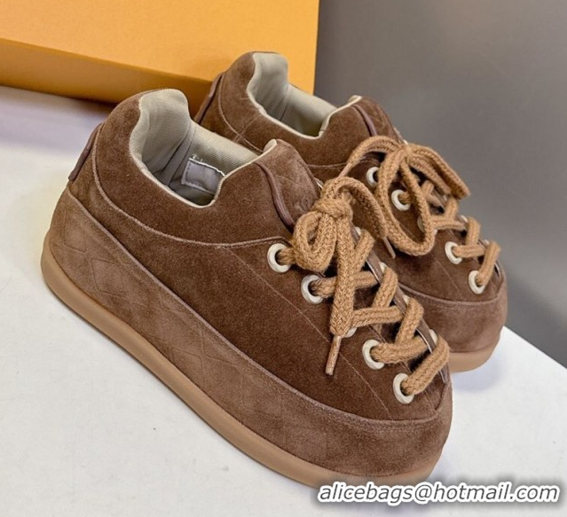 Big Discount Louis Vuitton LV Yeti Lace Up Platform Shoe in Suede 1AIJDZ Brown 1022061