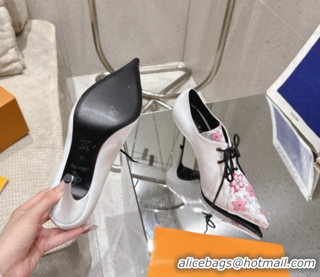 Discount Louis Vuitton LV x TM Monogram Canvas and Leather Laced-up Pumps 9cm White LV102203 1022024