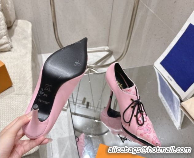 Big Discount Louis Vuitton LV x TM Monogram Canvas and Leather Laced-up Pumps 9cm Light Pink LV102203 1022025