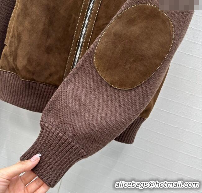 Super Quality Miu Miu Sheepskin Suede and Knit Jacket 0814 Dark Brown 2025