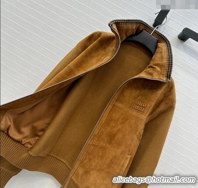 Big Discount Miu Miu Sheepskin Suede and Knit Jacket 0814 Tan Brown 2025