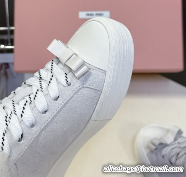 Hot Style Miu Miu Suede and Wool Sneakers with Bow Grey 1024089