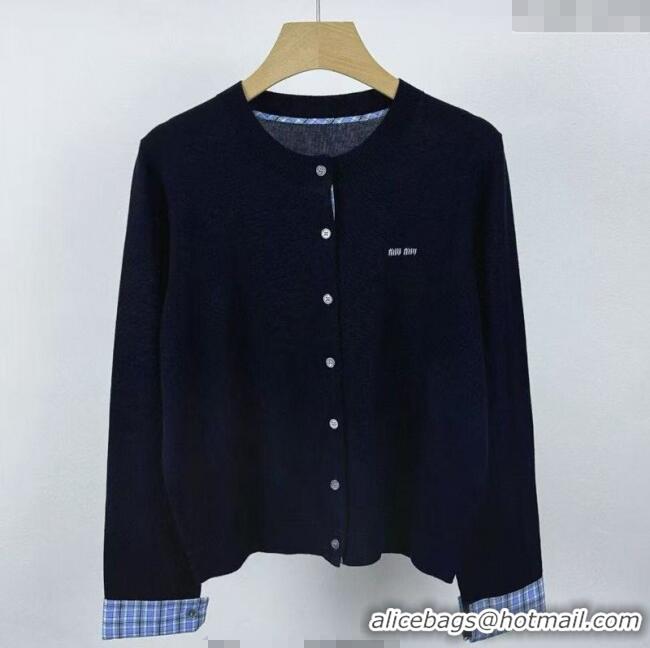 Your Position: Home > Clothes Online > Miu Miu Clothes > Big Discount Miu Miu Wool Cardigan with Blud Plaid Trim MM122523 Royal Blue 2025