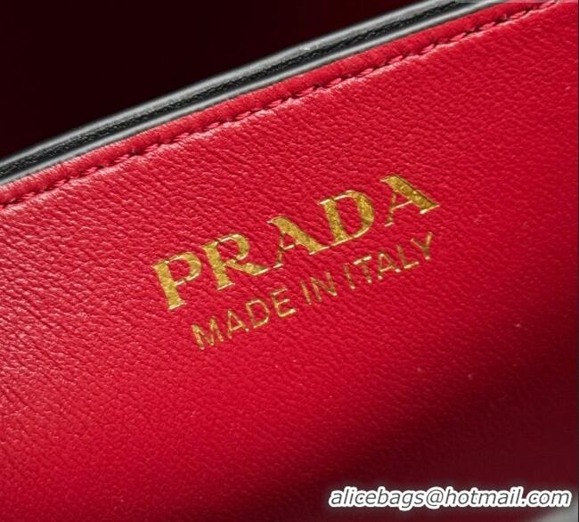 Big Discount Prada Panier mini Saffiano leather bucket bag 1BA217 Black/Red 2025