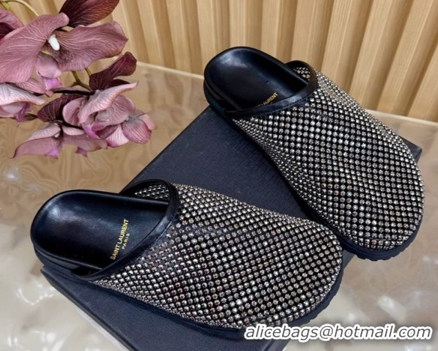 Good Quality Saint Laurent Strass Mesh Mules Black 2026 SL022406