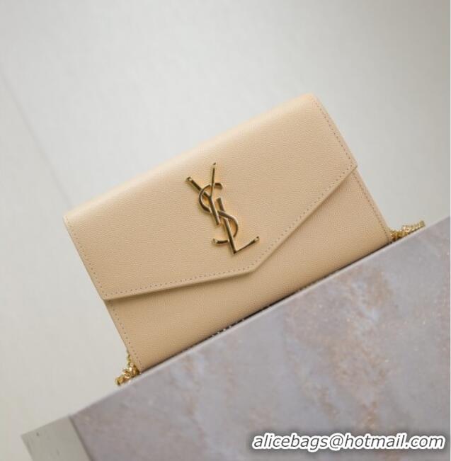 Trendy Design Saint Laurent Uptown Chain Wallet in Grained Leather 607788 Beige 2025